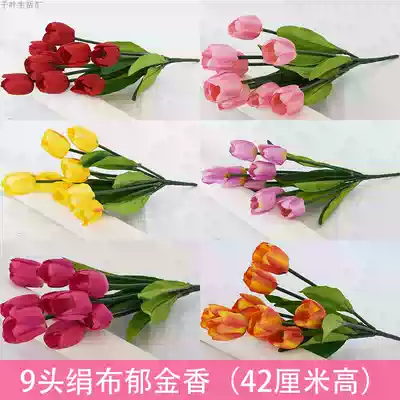 Simulation tulip flower branches 9 Heads 7 silk flowers single gardening decoration real estate flower beds festival layout beautiful flowers