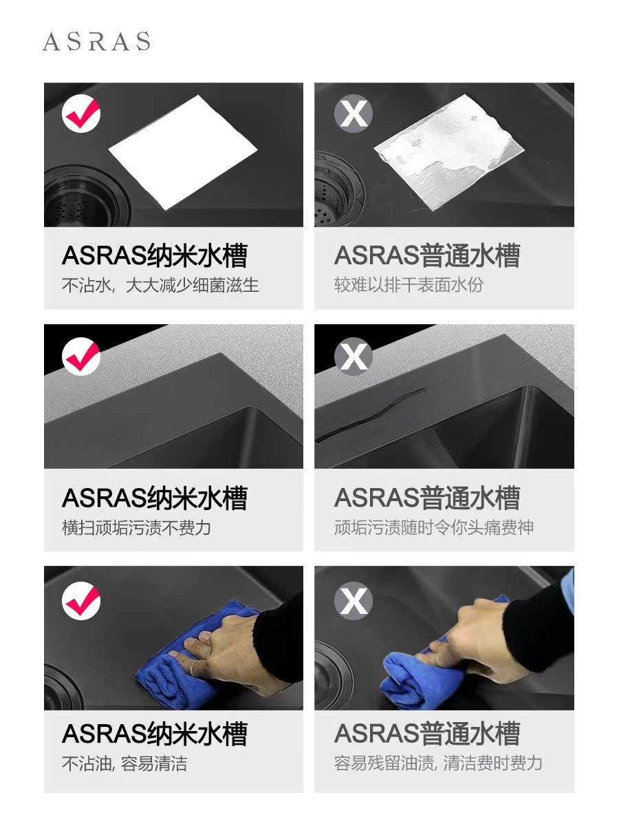 Assas 4MM Thickened Black Nano 304 Stainless Steel Hand Sink Large Single Sink Package Table Lower Pool Wash Basin