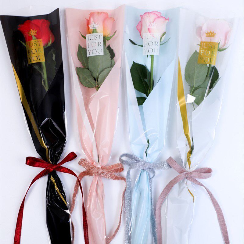 New Pint Crown Triangle Single Branch Rose Packing Bag Single Bag Rose Bag Matte Gold Thread Single Bag Flowers Wrapping Paper