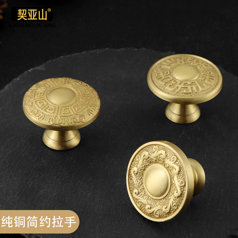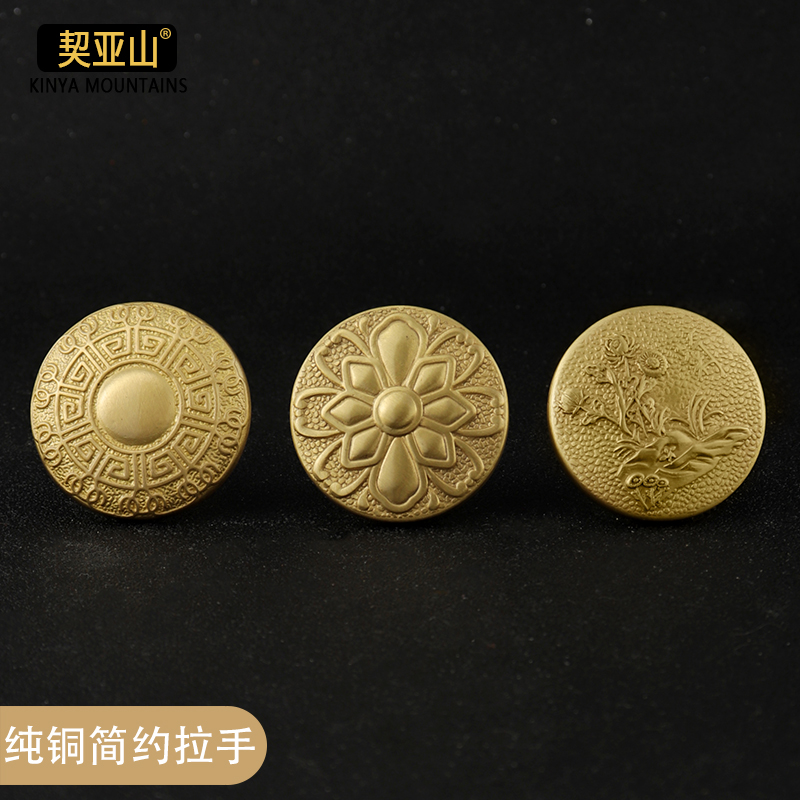American brass cabinet door single-hole handle drawer cabinet door pure bronze flower type small handle field Nordic small fresh gold