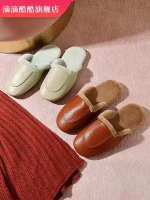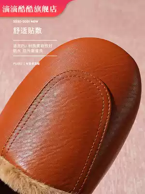 New home leather slippers winter home warm indoor waterproof women non-slip waterproof autumn winter leather cotton slippers men