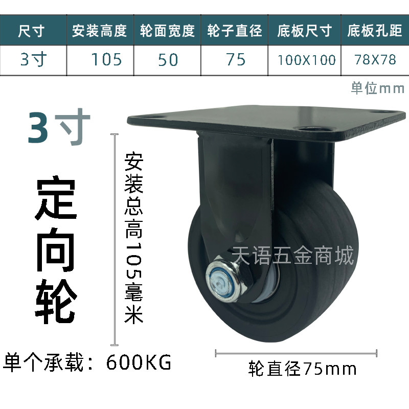 3-inch heavy-duty universal nylon caster CSHN75-N low center of gravity Japanese-style giant industrial steering replacement roller