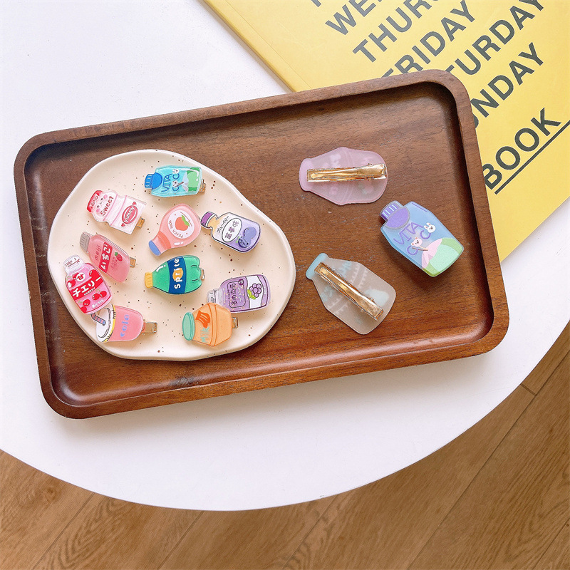South Korea's new adorable large size frosted acrylic drink bottle girl's heart side clip card for children Xia hairpin-Taobao