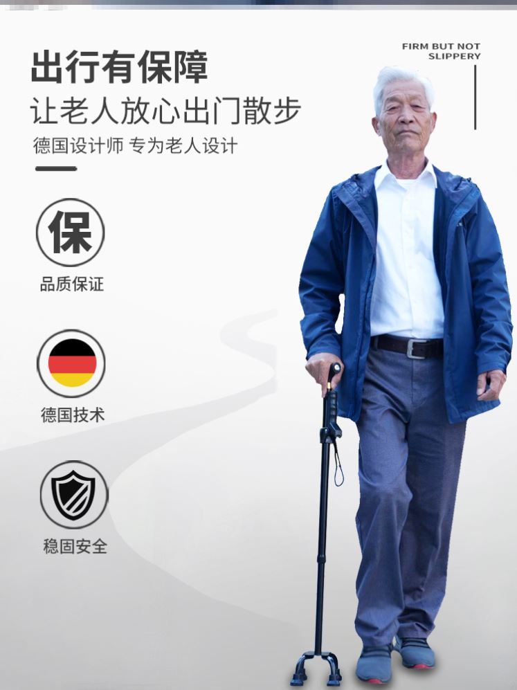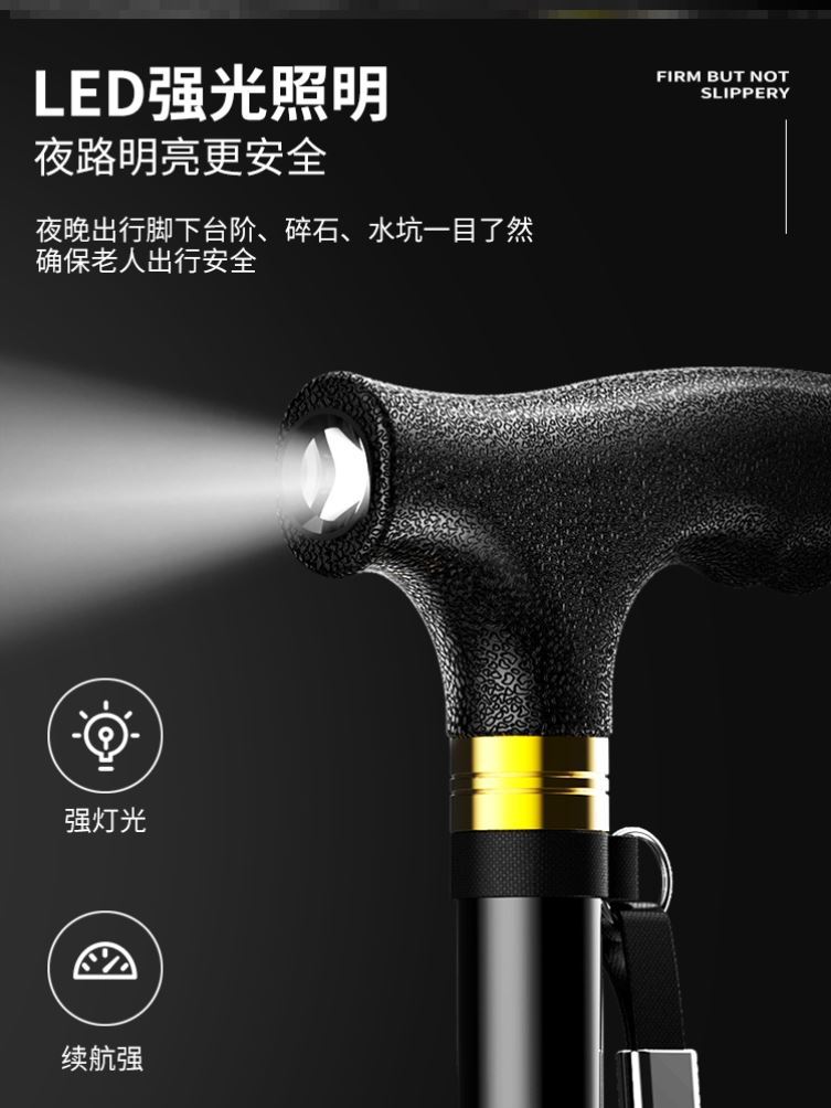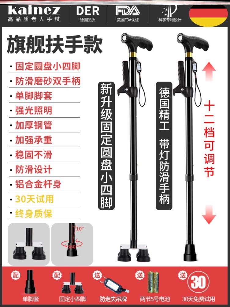 Anti-slip walking stick for elderly armrests, walking stick with four feet anti-slip, light aged multifunctional lamp telescopic aluminium alloy