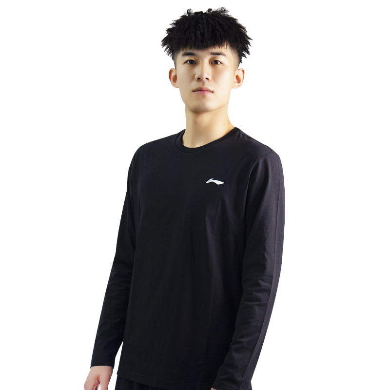 Li Ning Long sleeves T-shirt men's fall black new round collar loose logo Embroidery Casual Thin PANTS THICK COTTON T TIDE