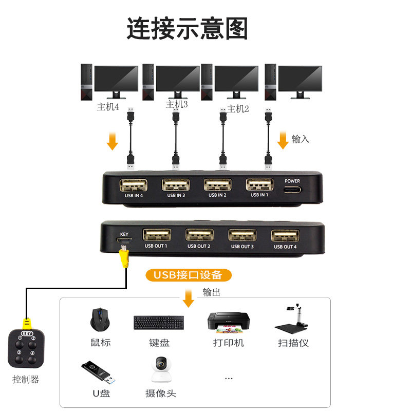usb printer shareware 4 in 4 out USB splitter 4 computer host notebook shared 1 set of keyboard mouse printer U disk usb switcher a mouse control 4 computers-Ta