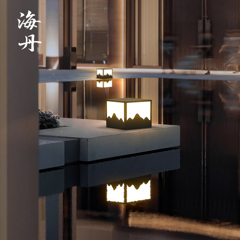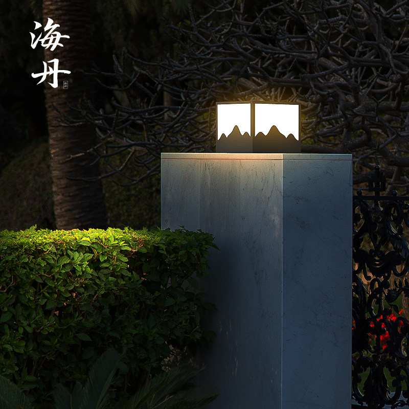 Outdoor column light solar column head light waterproof Chinese landscape light villa garden light fence gate door post light