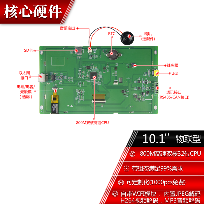 10 1 inch 1024*600 RS485 serial screen CAN Ethernet enhanced version of the Internet of Things