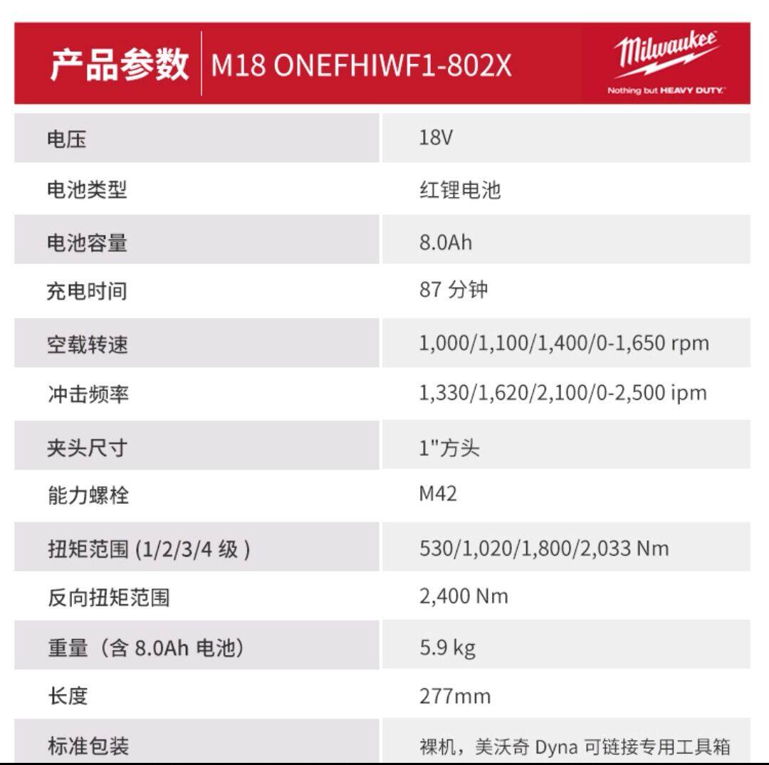 Milwaukee Mevauchi brushless rechargeable 1 " High torque shock wrench M18ONEFHIWF1-801X