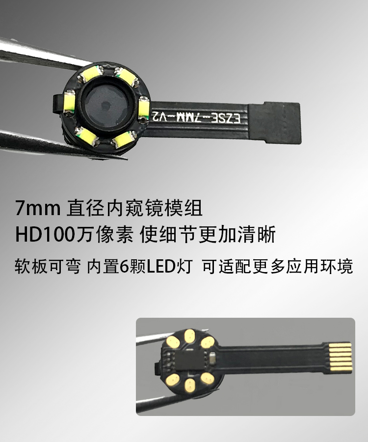 HD720P endoscopic mirror module 7mm lens USB2 free 0 drive ultra-short industrial pipe steering camera module