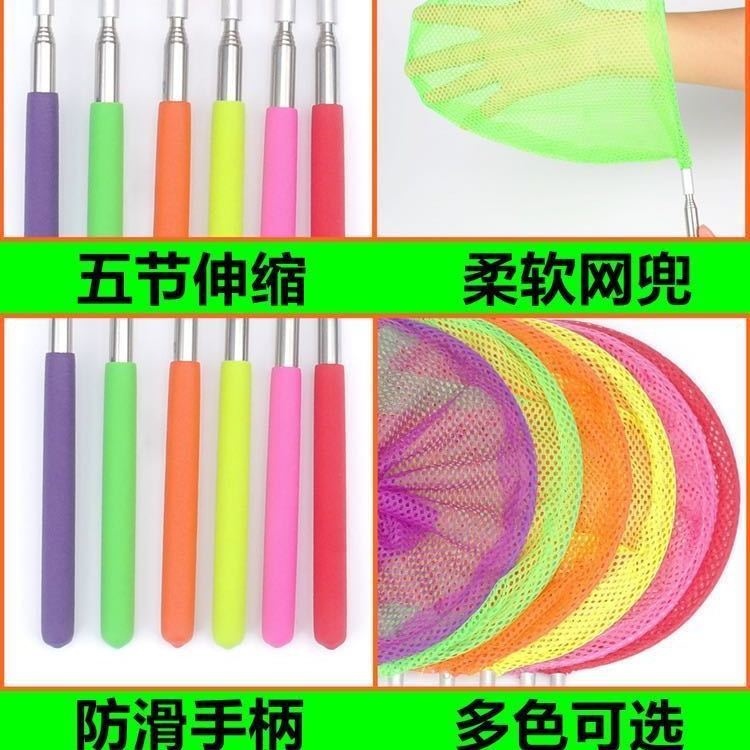 Children's fishing stainless steel outdoor insect catching butterfly retractable net bag fishing net insect net catching insect net fishing net play