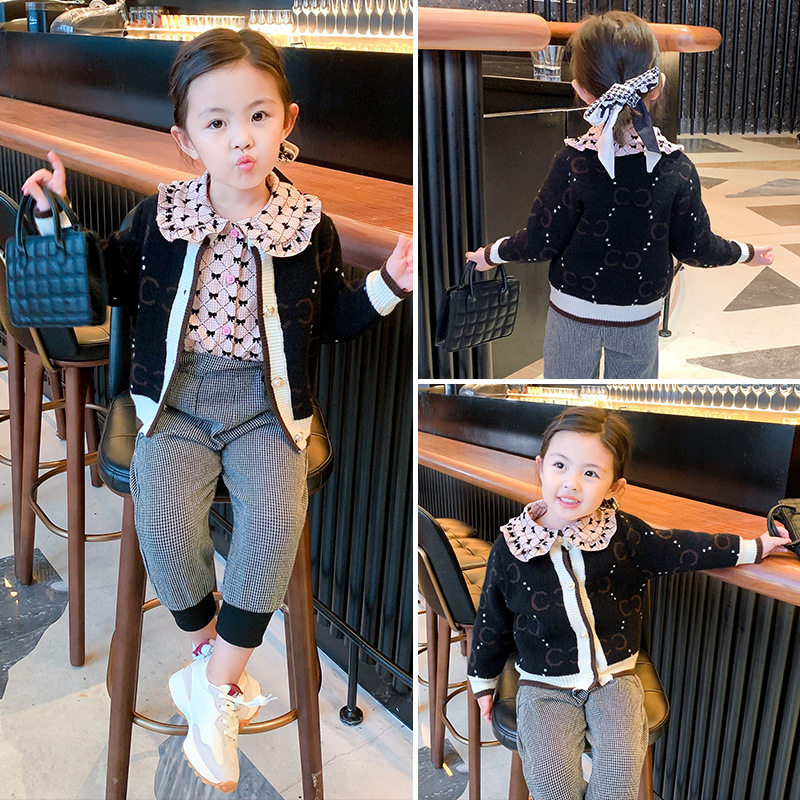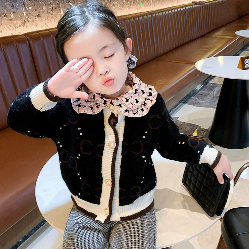 Girls' Western style sweater cardigan autumn 2021 new spring and autumn knitted jacket children's small fragrance all-match top winter