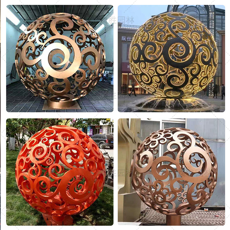 Stainless steel sculpture custom hollow ball metal water feature luminous white steel feng shui ball sample house display center hotel moon ornament