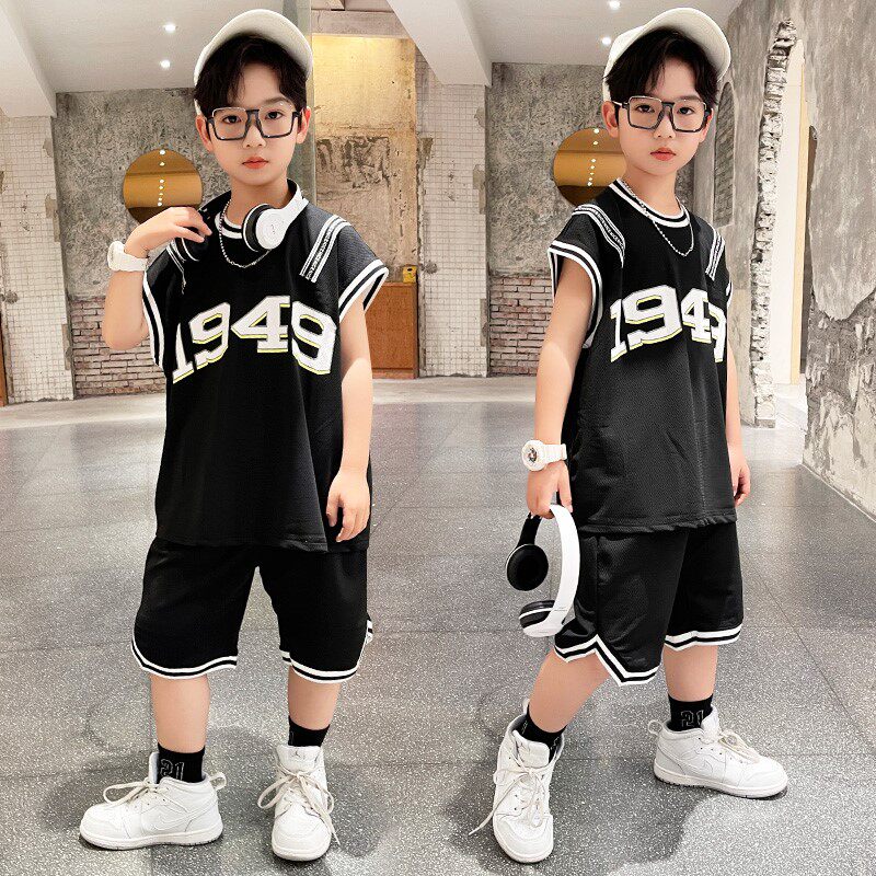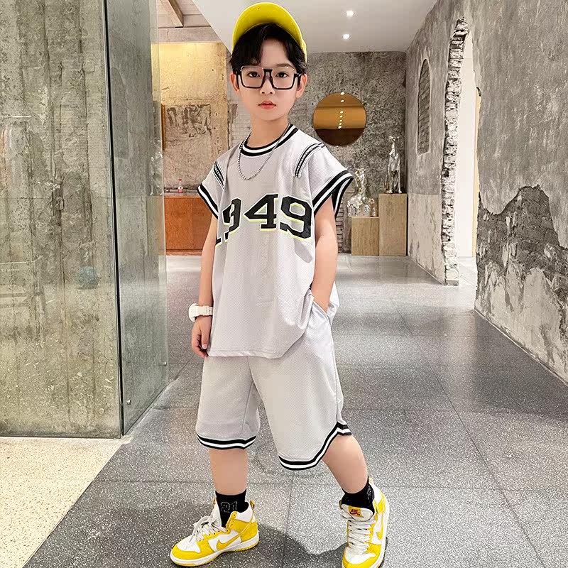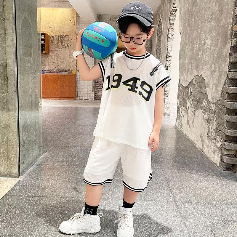 Korean boy sports suit 2022 summer new handsome and fashionable children's middle-aged and older boys white basketball suit - Taobao