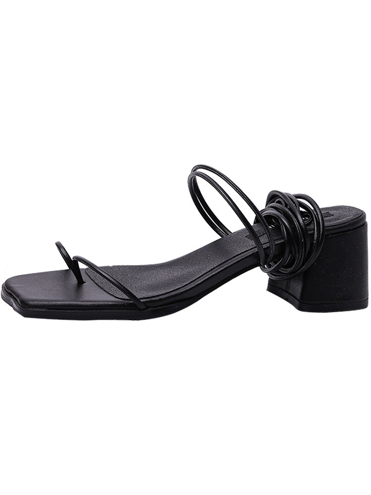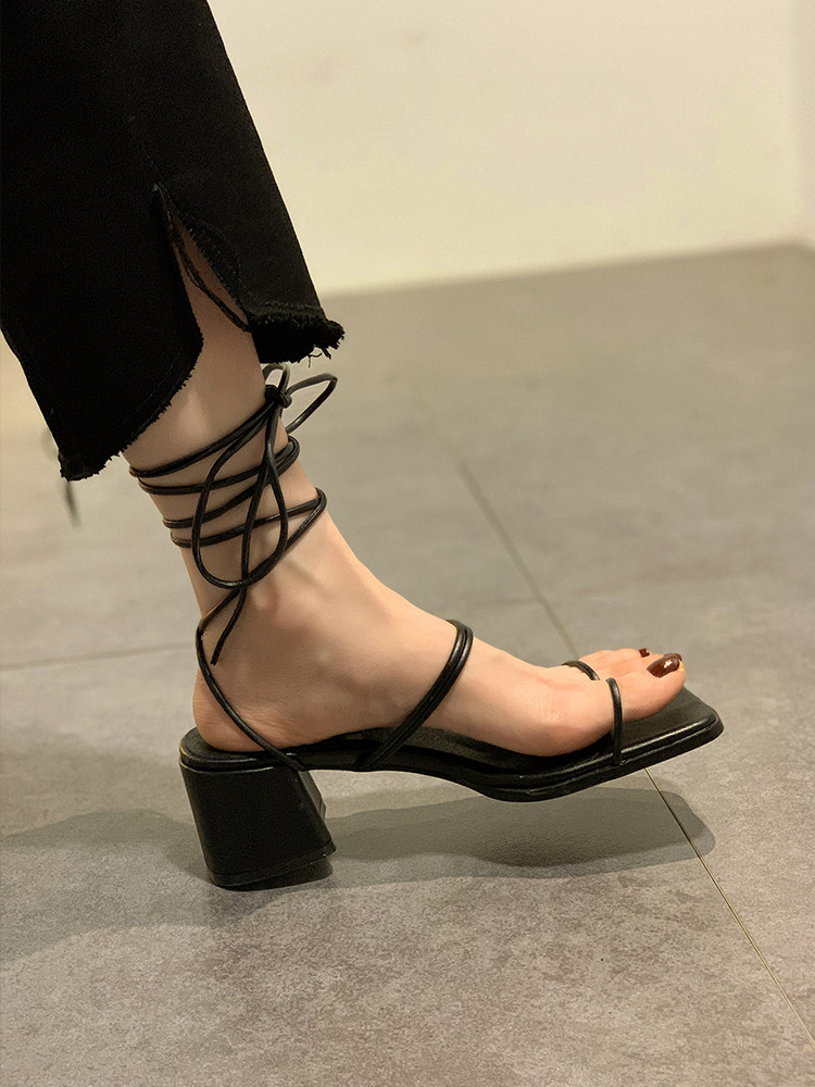 Overseas cool oblique female 2021 summer new mid-heel Joker high-heeled oblique thick-heeled tie roman shoes temperament female