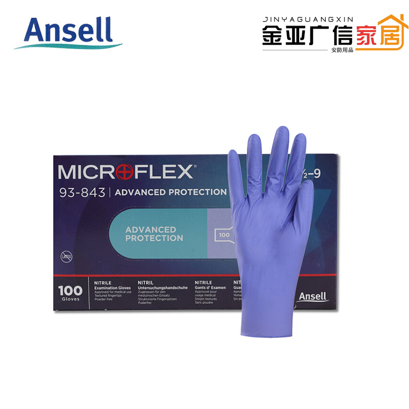 Ansell 93-843 disposable nitrile gloves laboratory oil-resistant clean powder-free purple blue 100 packs