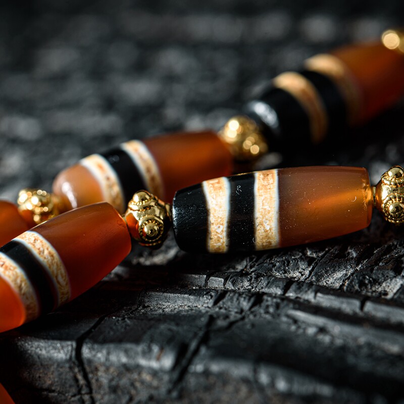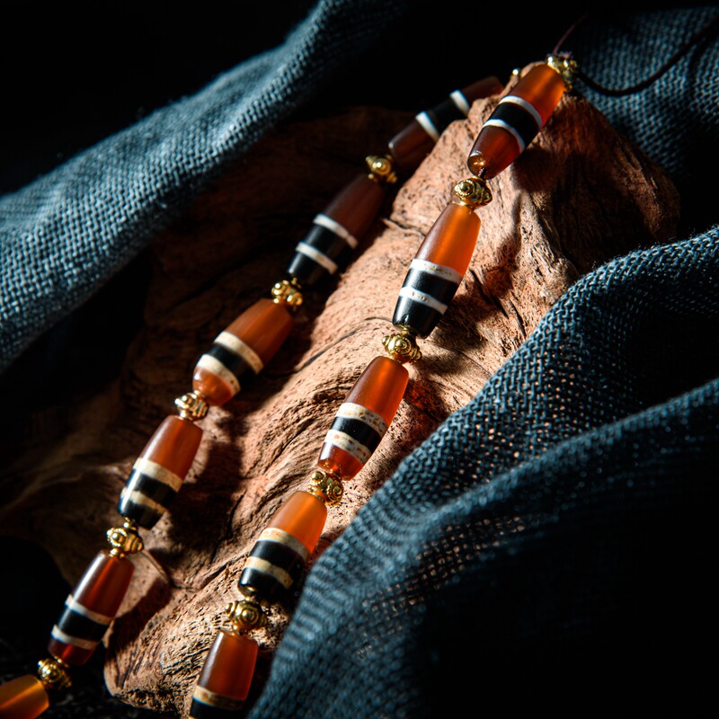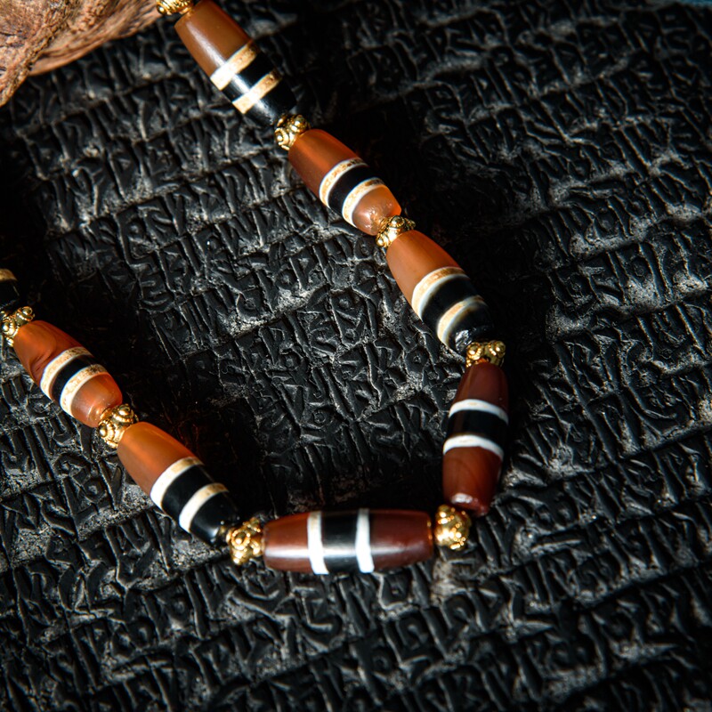 Natural Old stock Lonely Goods Tricolor with small thread bead necklace with male and female lock bones chain accessories 3-45 line dZi beads