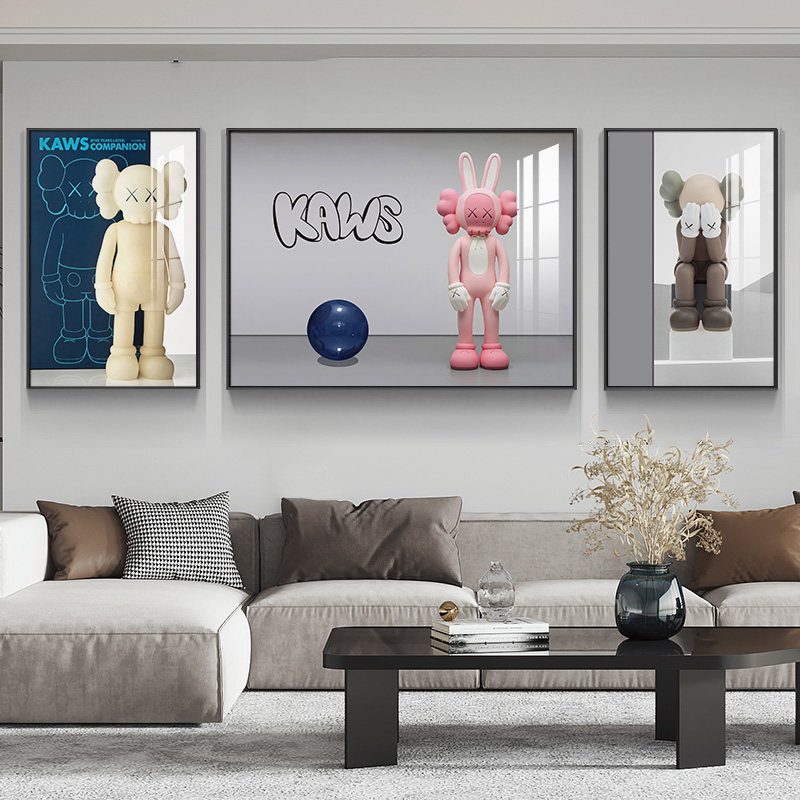 Kaws Chao brand living room decorative painting modern simple sofa background wall hanging painting violent bear joint doll triptych