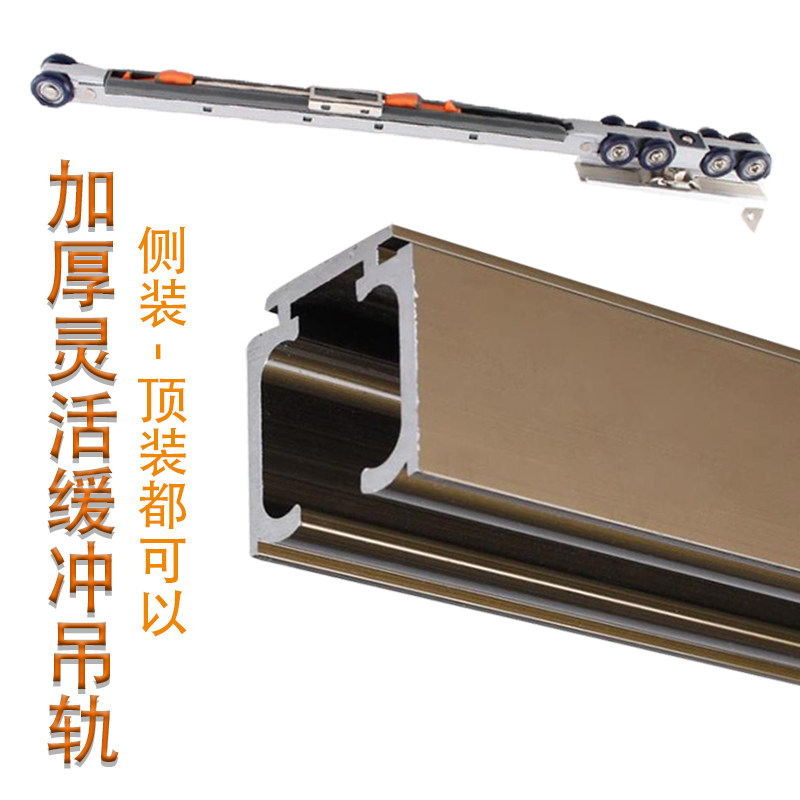 Special track translational thickened silent solid wood door pulley slide rail for pushing sliding door buffer suspension wheels special track translation