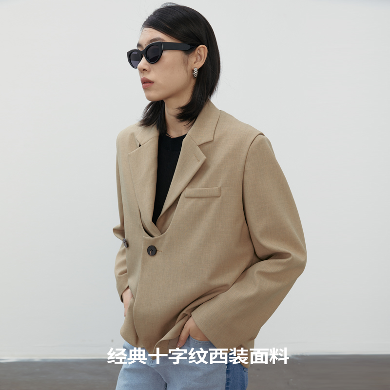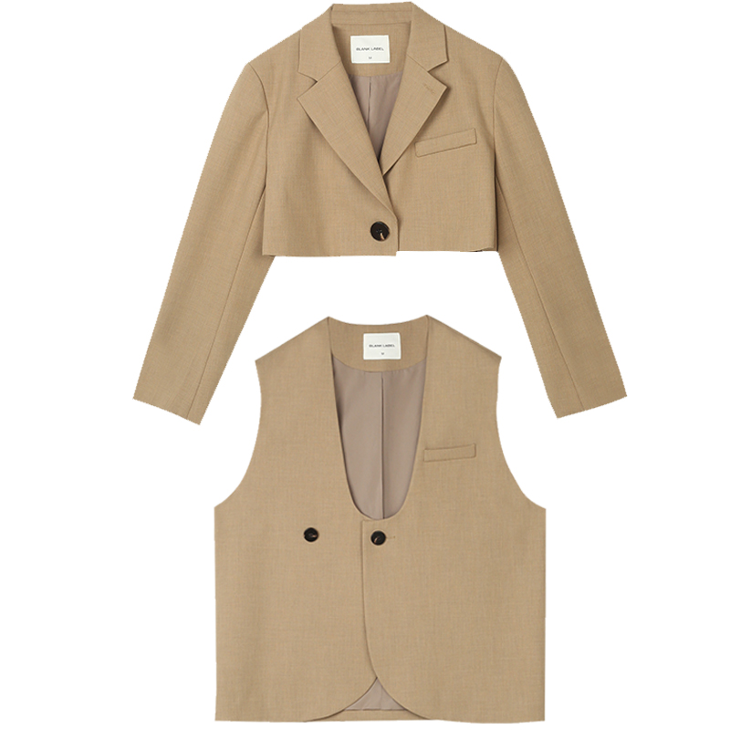 BLANK LABEL Extremely Minimalist Superior Temperament Brown Waistcoat Vest Semi-Cut Two-piece Suit Suit Women Spring
