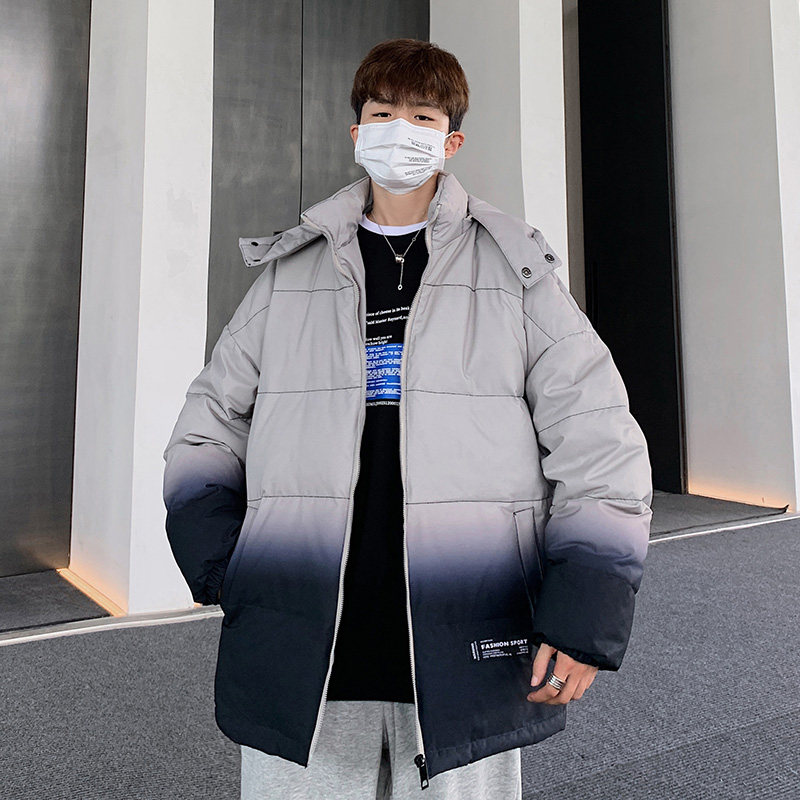 2021 Couples Down Jacket Men's Winter New Hong Kong Trend Gradient Rainbow Color Thickened Handsome Student Men's Jacket