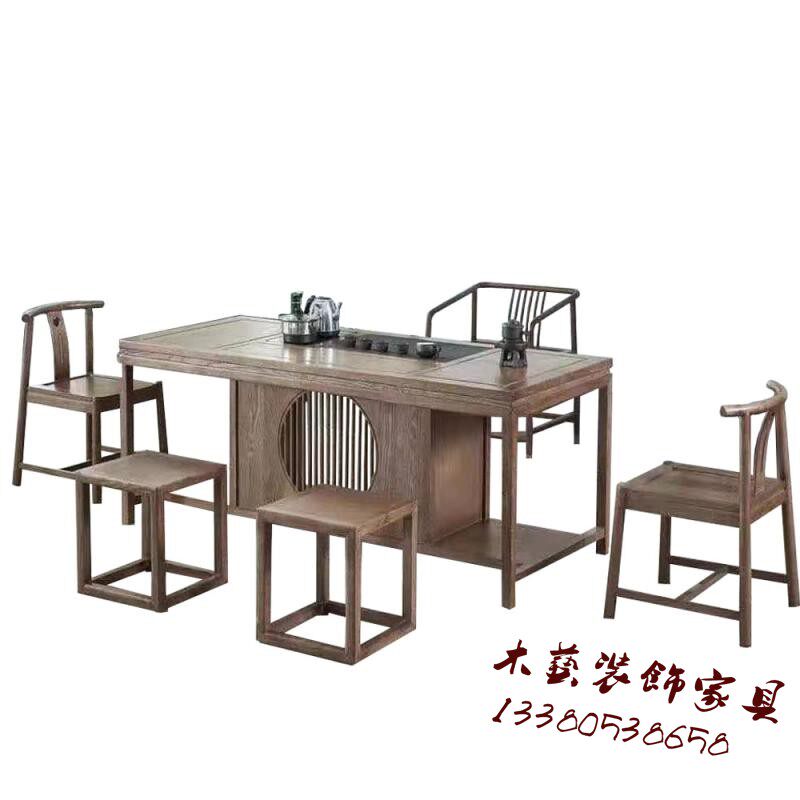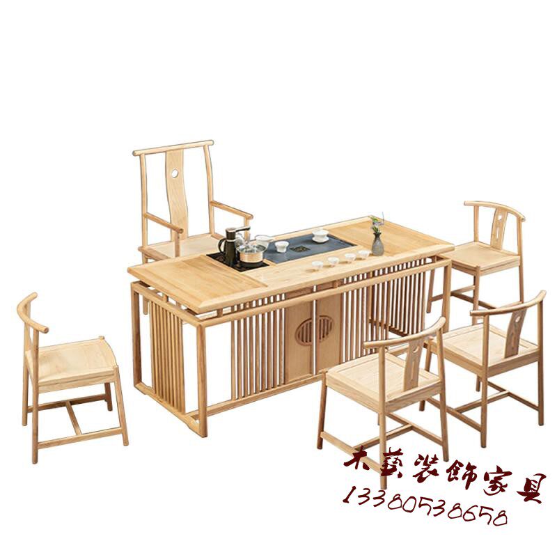 New Chinese-style ash wood tea table and chair combination solid wood coffee table living room household Kung Fu tea making table Zen tea room furniture