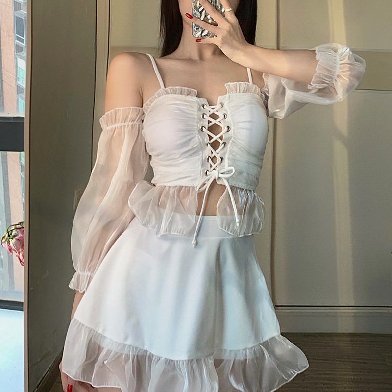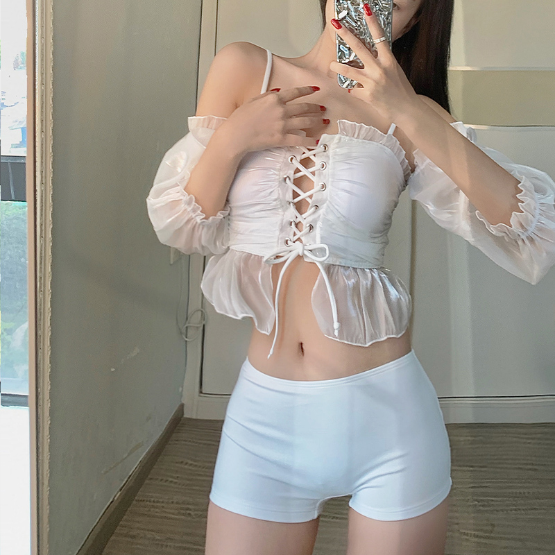 Shika white summer split swimsuit three pieces of fairy van shading and thin sexy pure dress swimsuit
