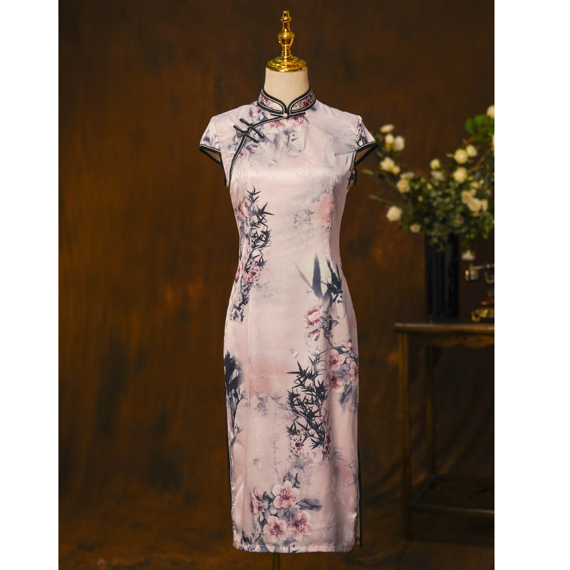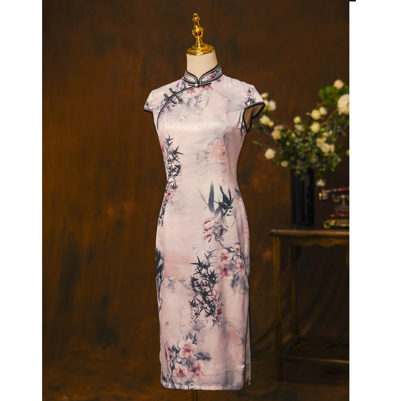 Mom Qipao 2022 New Retro China Wind Printing Daily Old Shanghai Improved Edition Foreign Dress Women's Summer