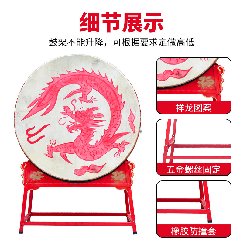 Big drum, cowskin drum, vertical war drum, Chinese red drum and dragon drum instrument, temple drum instrument, mighty gongs and drums, full set