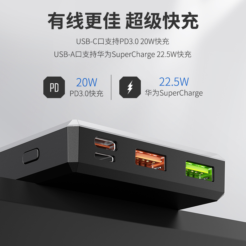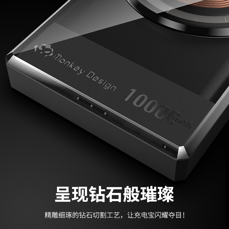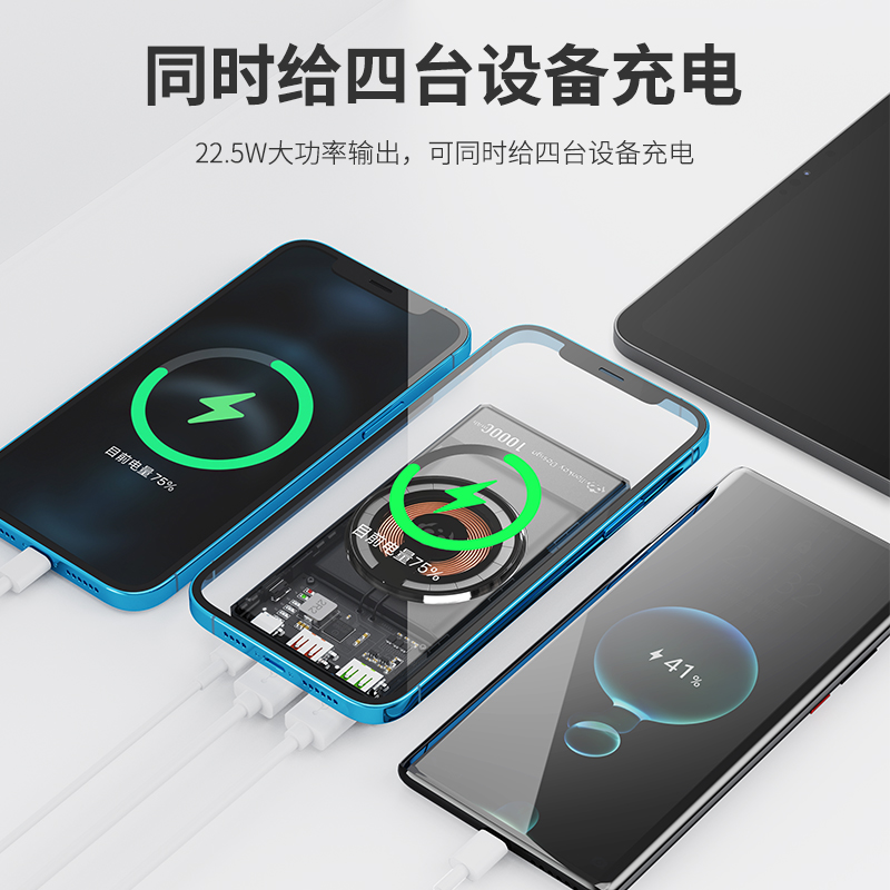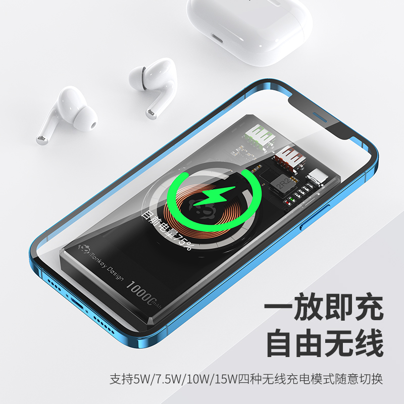 RUIYUE Sharpening Official Flagship Store High Face Value Wireless Transparent Fuselage Mobile Charging Ultra Slim 10000 mAh Large capacity Flashcharging PD Fast charging high-end thin black tech