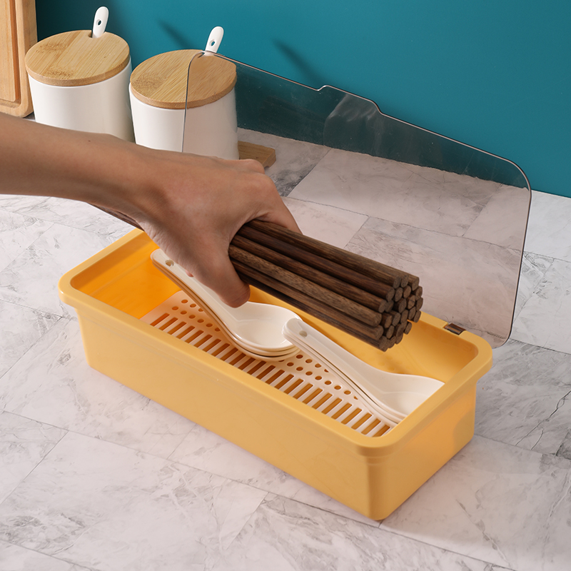 Home Dust Resistant Drain Chopsticks Basket With Lid Chopstick Cylinder Chopstick Case Kitchen Dining Room With Chopsticks Spoon Containing Box