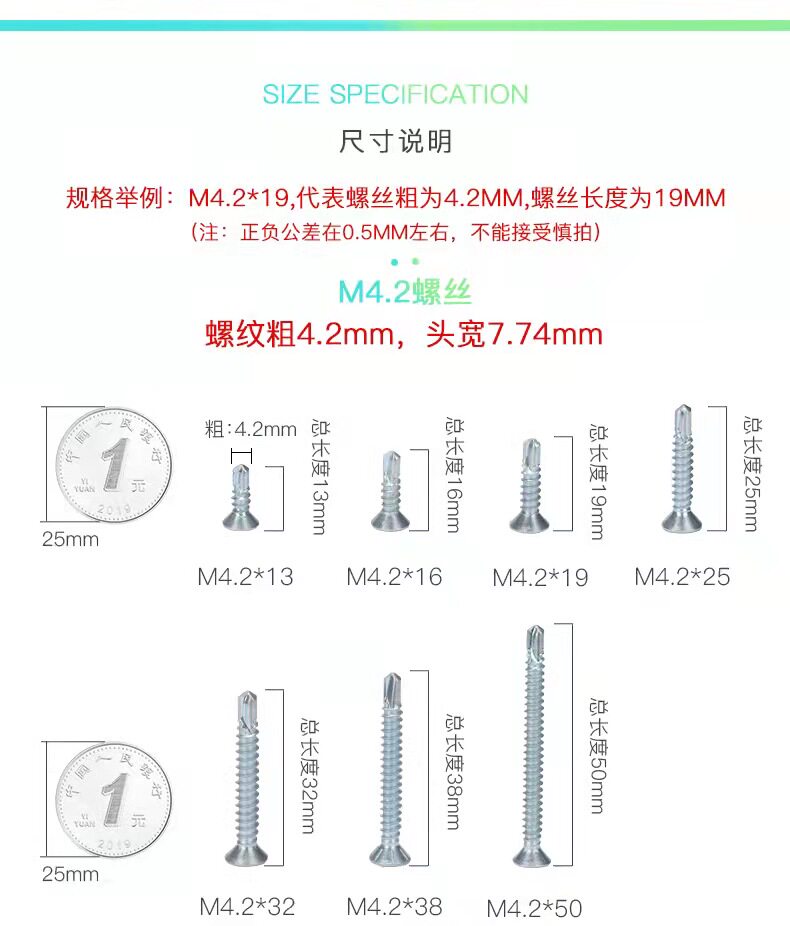 Countersunk head M4 2*13 (4 catties about 1920) Countersunk head M4 2*16 (4 catties about 1680) Countersunk head M4 2*19 (4 catties about 1480) Countersunk head M