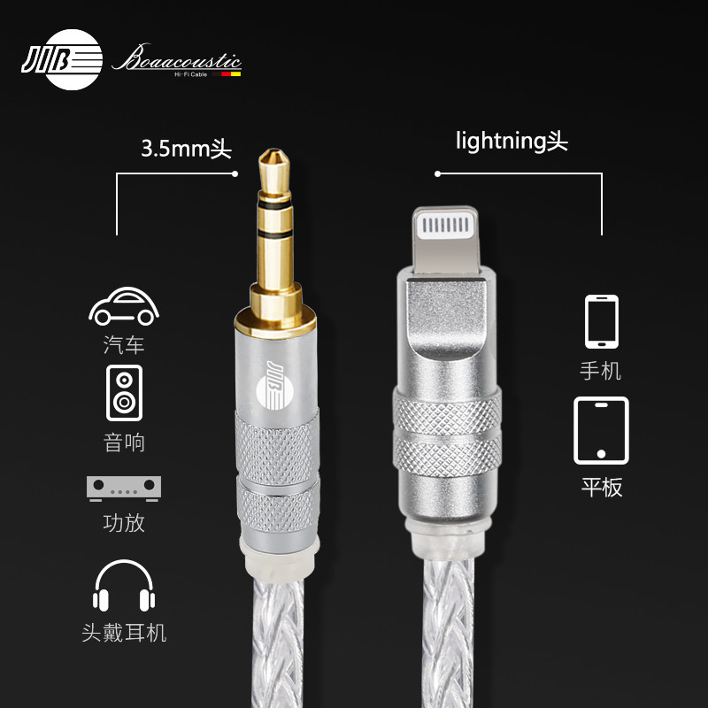 JIB Germany python oxygen-free copper silver plated vehicle aux audio line applicable Apple applicable iPhone12 11 8