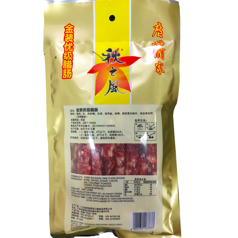 Guangzhou Restaurant Autumn Wind Golden Premium Sausage Salami 475g Cantonese-style Cantonese-flavored 28 Sweet Sausage Gift Souvenir