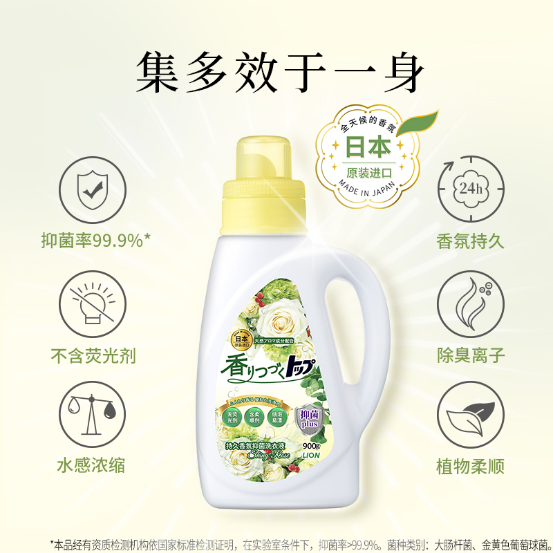 Lion King Japan Imports Persistent Fragrance of Gentle And Smooth Bacteriostatic Laundry Detergent 900g Rose Wasps and In-one Concentrated 3 bottles