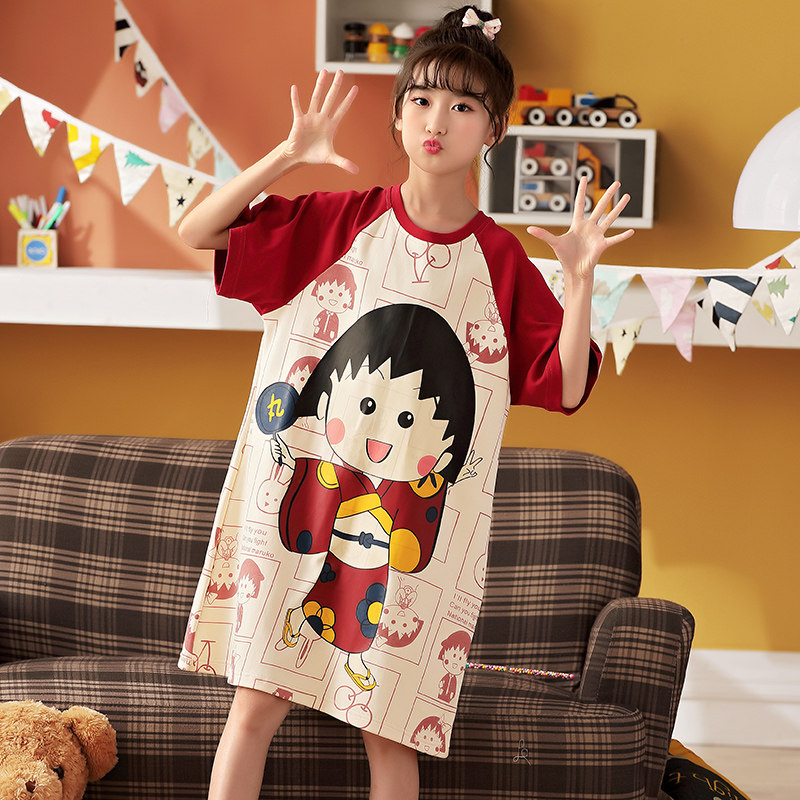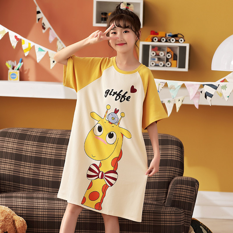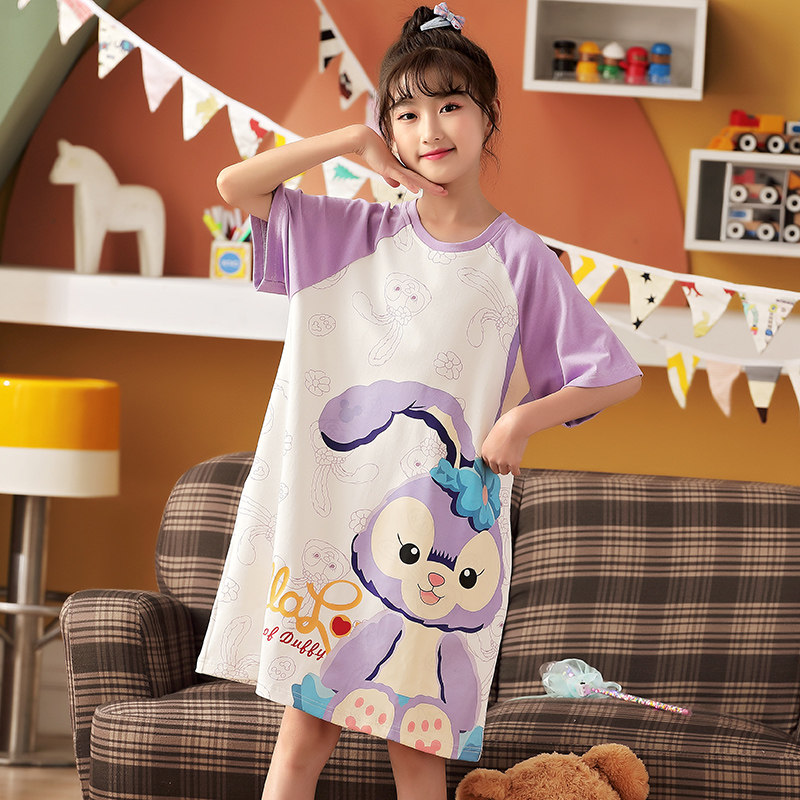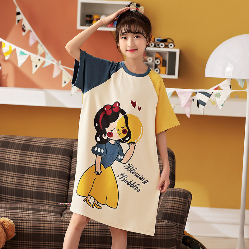 Children's pajamas girls are pure cotton summer short sleeve thin beauty girls in the big boy's home dress can wear the princess