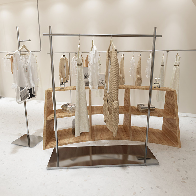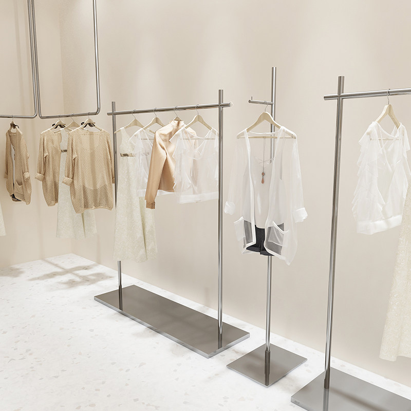 Clothing store display props stainless steel floor hanger women's clothing store special display shelf silver clothes rack
