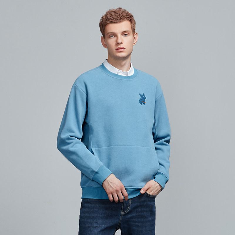 Camel men's 2021 autumn new sweater round neck solid color embroidery fashion casual long-sleeved sweater top men