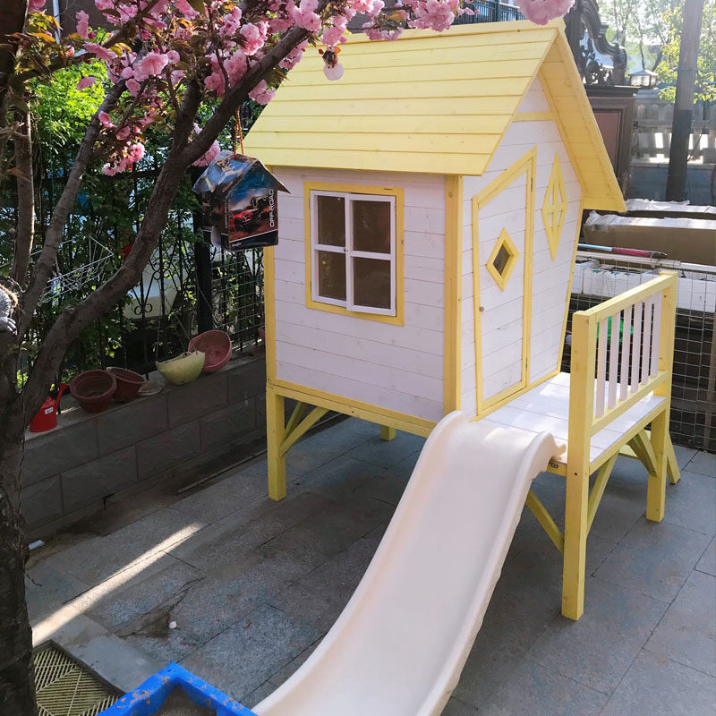 Outdoor large children's wooden house Game room Climbing tree house Slide Tent house Kindergarten Toy Pink amusement Park
