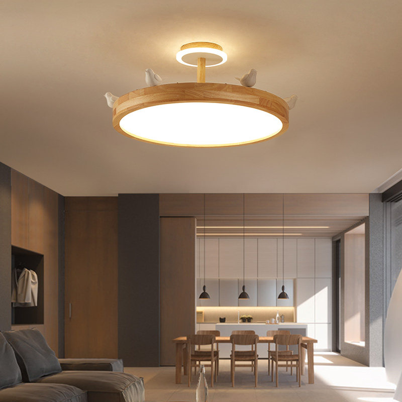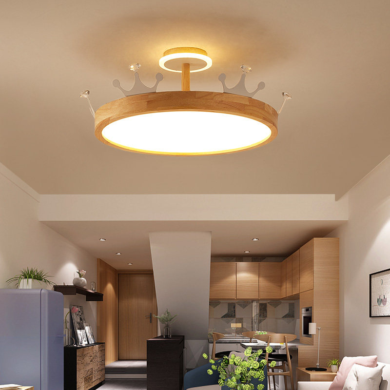 Nordic bedroom lamp children's room simple modern warm romantic room lamp Japanese solid wood led living room ceiling lamp