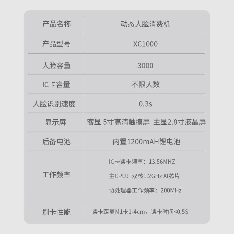 Carpics XC1000 Dynamic face recognition Consumer machine Cafeteria Dining Hall Brush Face Consumer Machine A-Face Consumer Machine