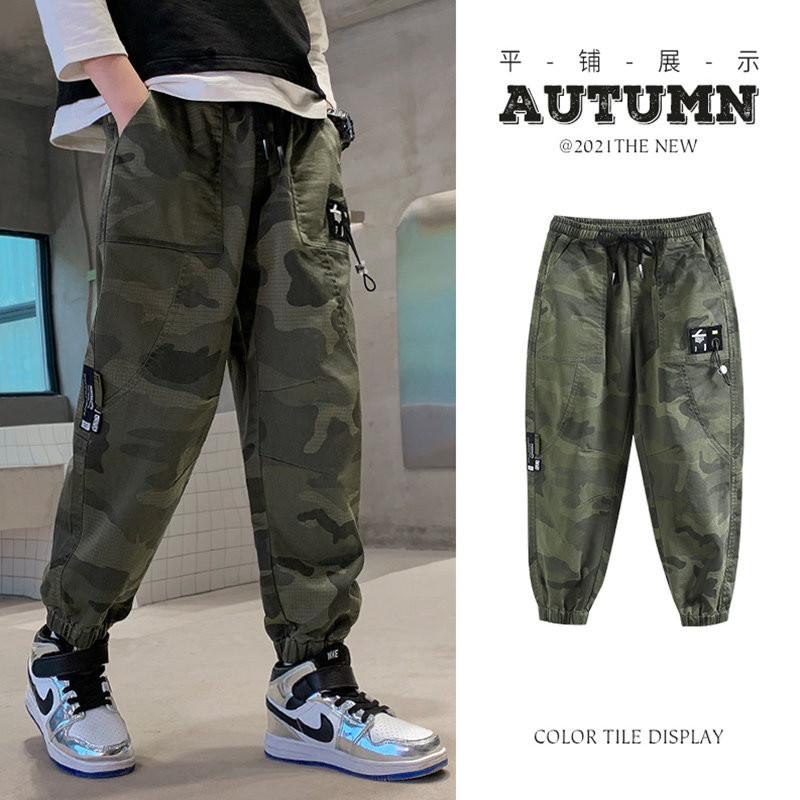 Boys overalls pants camouflage autumn clothing 2021 new children's sports casual pants in big children pants boys Spring and Autumn Tide