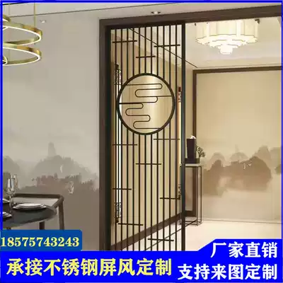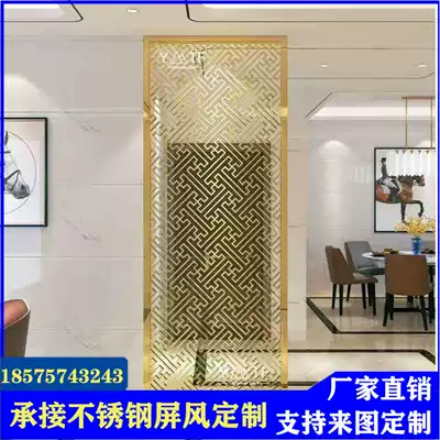Outdoor stainless steel background wall living room screen partition titanium metal grille landscape painting hotel lobby decoration customization