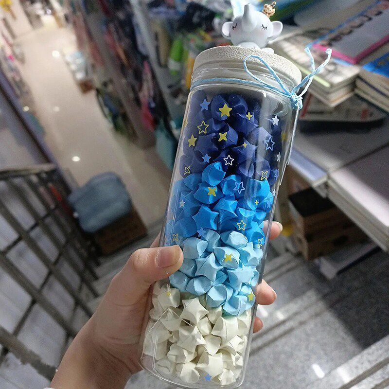 Gradient color star origami stack lucky star color photocopying paper strip small five-pointed star material wishing bottle folding star handmade paper