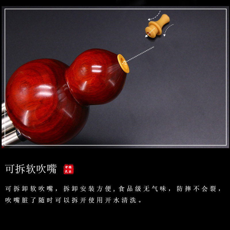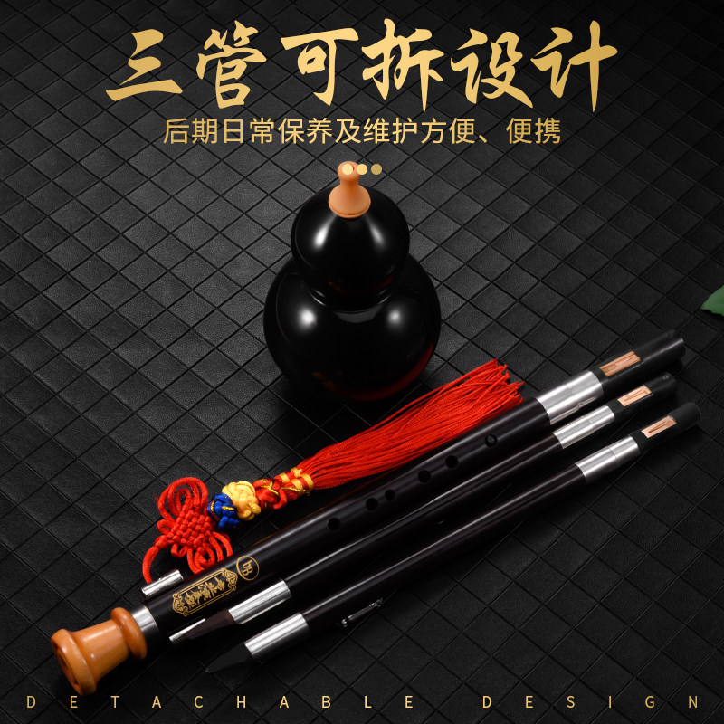 Hulusi professional playing type B-tune adult C-tune primary school students all red ebony hulu silk musical instrument beginner