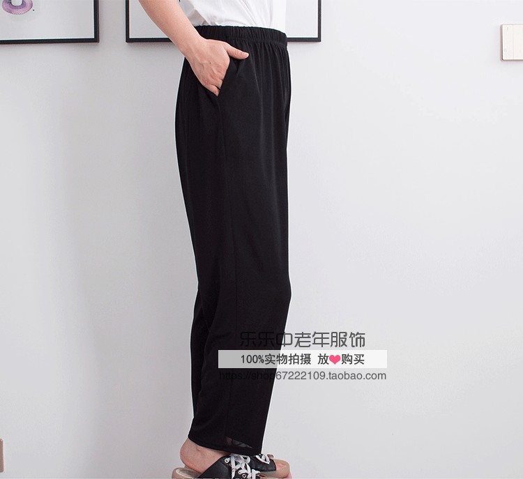 Mid-aged women pants Summer thin section 200 catty overweight overweight Mama pants ice wire tightness waist straight cylinder long pants