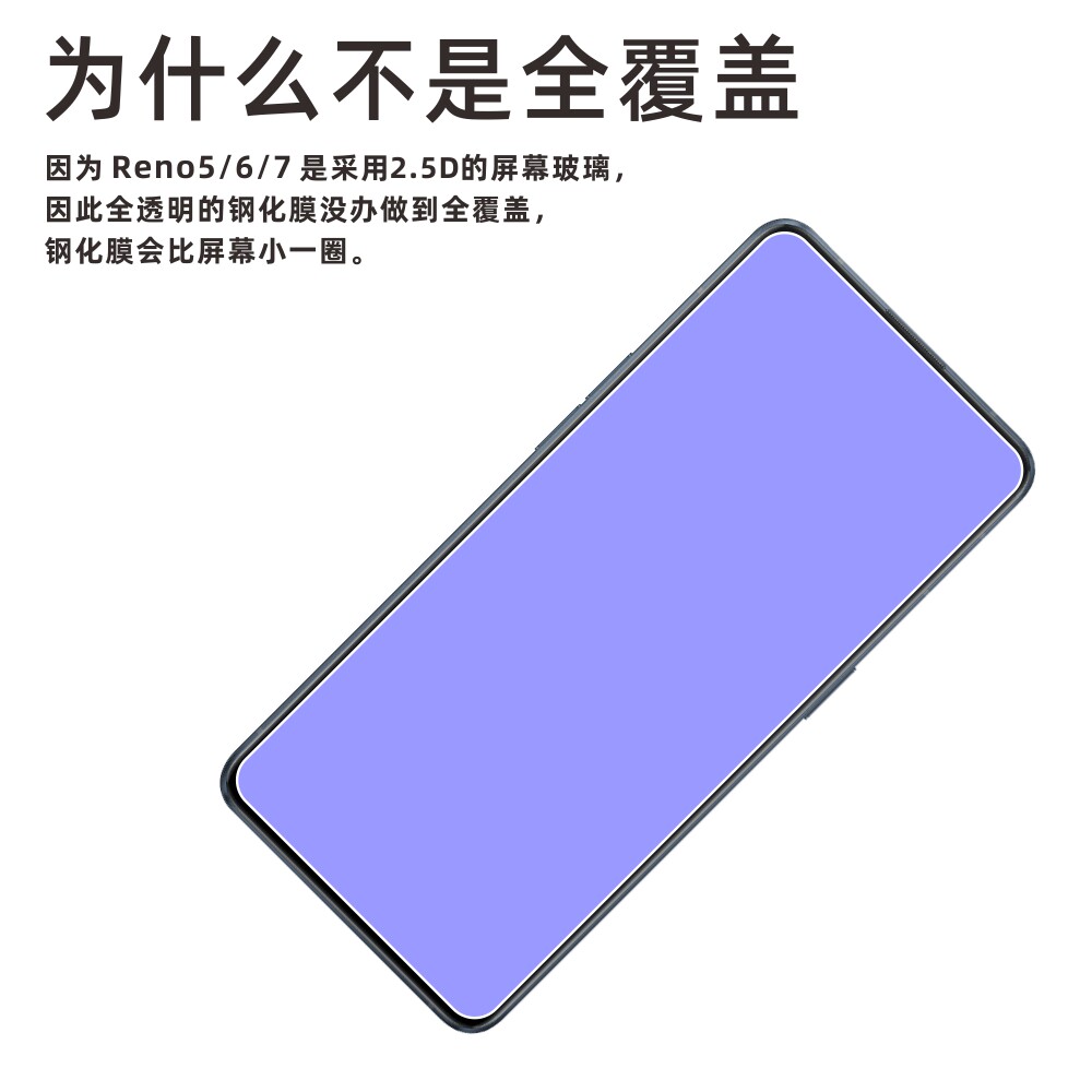 Application OPPO Reno6 7 Reno5 5 K steel chemical film non-full screen covering glass mobile phone protective film