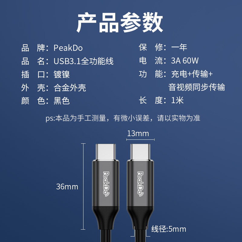 PeakDo Data Line Type-C Public USB3 1 Full-feature PD Charging Household Office Conferences Connection Cable