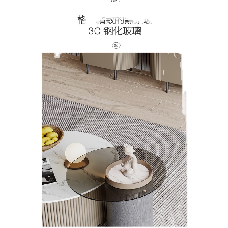 Rock Plate Tea Table Tempered Glass Edge A Few Sizes Round Tea Table Combined Rock Plate TV Cabinet Dipper Cabinet
