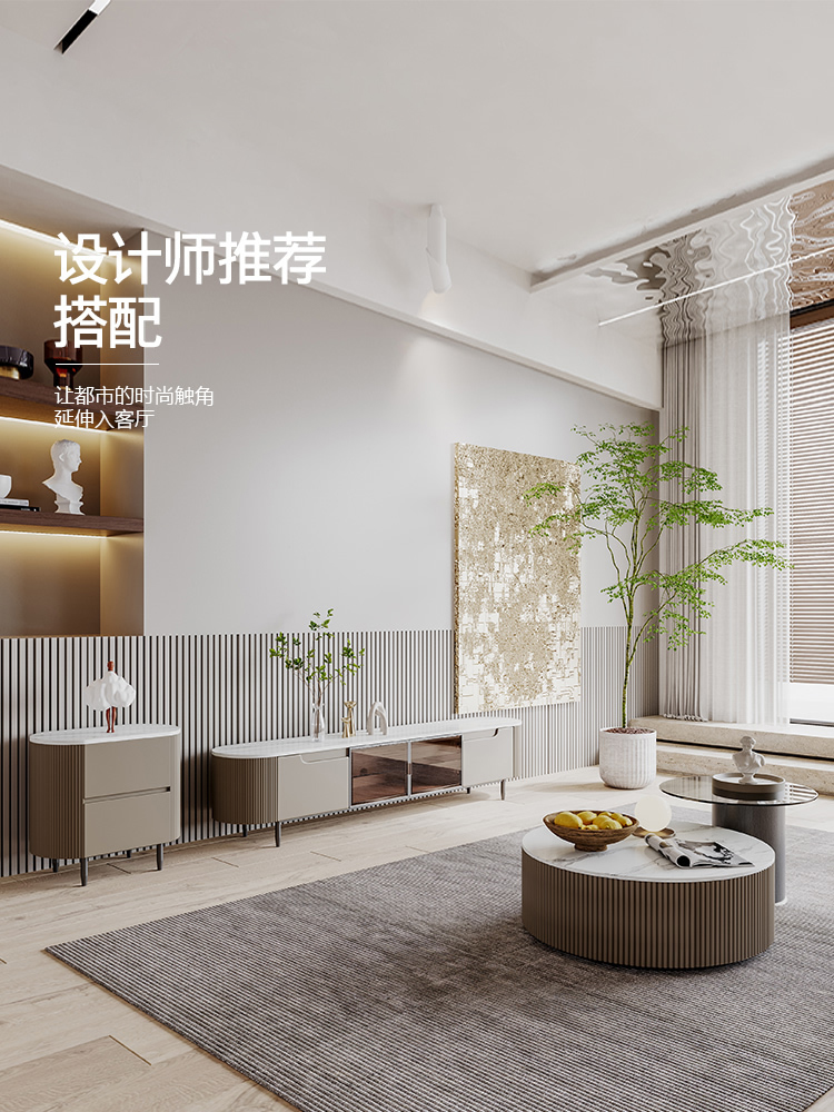 Minimalist rock plate Tea Table TV Cabinet Living-room Size Round Combination Light Lavish Minimalist Designer Web Red Wind Furniture